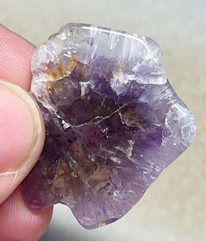 A random shaped Super 7 slice that is smooth on both sides.