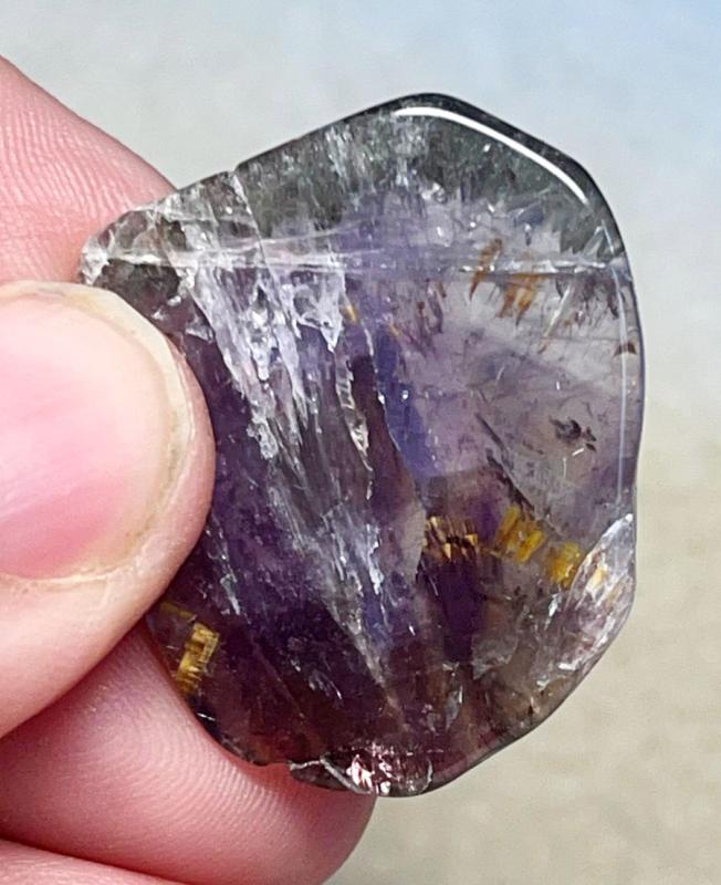 A random shaped Super 7 slice that is smooth on both sides.