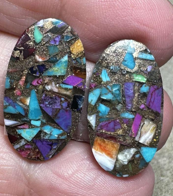 Oval 25x14mm Spiny Oyster Turquoise Cabochon Pair 06