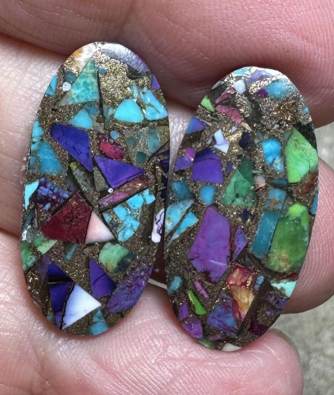 Oval 26x12mm Spiny Oyster Turquoise Cabochon Pair 17