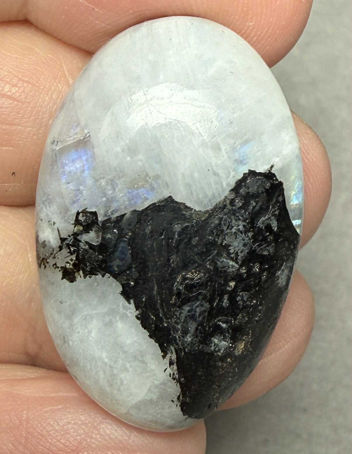 Oval 34x22mm Rainbow Moonstone with Tourmaline Cabochon 36