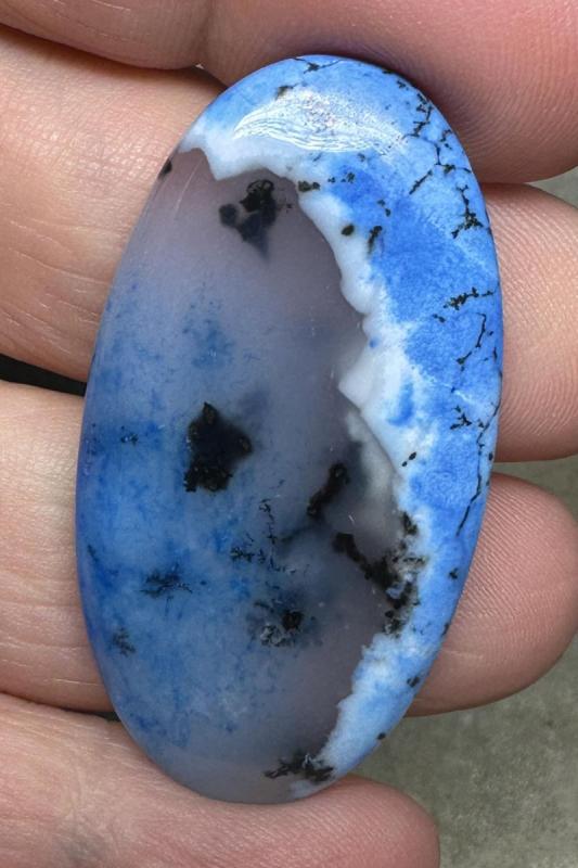 Oval 44x23mm Blue Coloured Dendritic Opal Cabochon 154