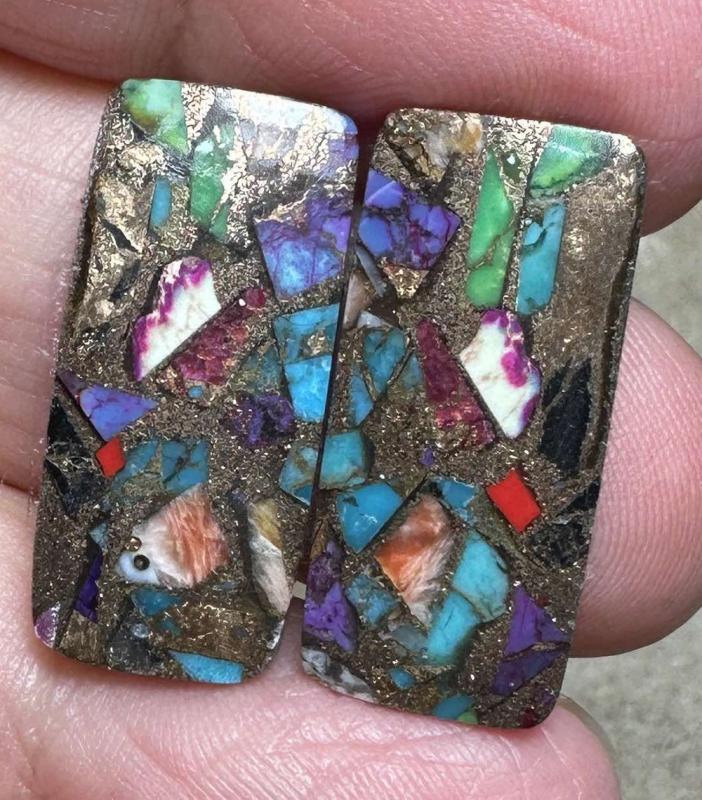 Rectangle 24x11mm Spiny Oyster Turquoise Cabochon Pair 16