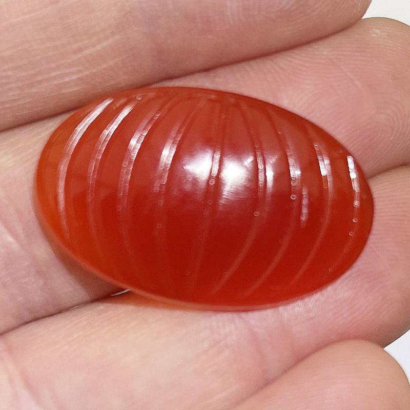 Single Oval 32mm Long Carved Onyx Pumpkin Cabochon