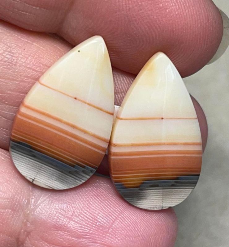 Teardrop 24x14mm Banded Carnelian Cabochon Pair 29
