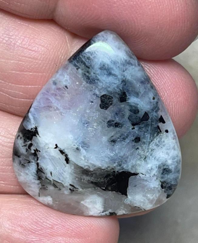 Teardrop 32x29mm Rainbow Moonstone with Tourmaline Cabochon 05