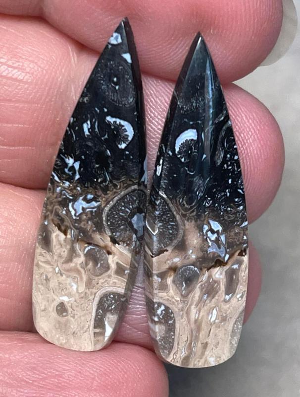 Size per cabochon approx: Length 35 mm Width 10.9 mm Depth 2.5 mm