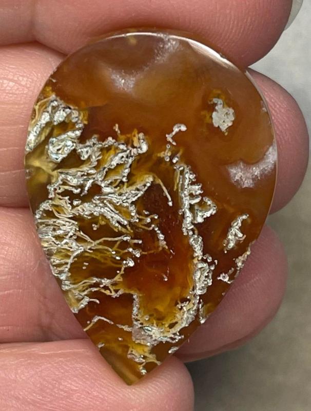 Teardrop 35x24mm Natural Lichen Moss Agate Cabochon 08