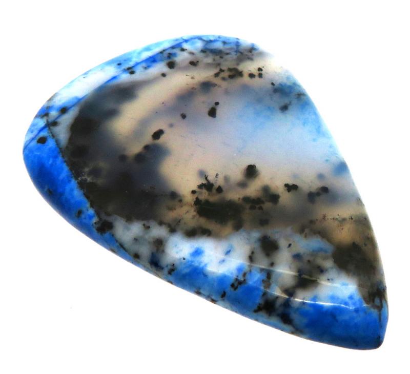 Teardrop 41x28mm Blue Coloured Dendritic Opal Cabochon 44